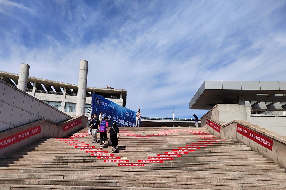 环境学院将思政元素融入到迎新工作中,营造青年学子爱党、爱国、爱校、爱院的良好氛围。学院制作了印有“环境群英 渐臻佳境”迎新主题的“录取通知书”喷绘和以268名新生花名册绘制而成的中国地图“朋友圈点赞”展板,吸引来自全国191个城市的新同学与科大元素“同框”,上好新生思政“开学第一课”。选取具有独特建筑风格的南二门、校园特色景点等照片为底板,精心打造“拼图认门”互动环节,切实推进爱校荣校教育第一时间进新生。学院制作16个考研“学霸宿舍”风采展和2023考研龙虎榜,搭建学生工作成果展示展板以及特色文化长廊,着力发挥朋辈示范引领作用,指引新生立志起航。