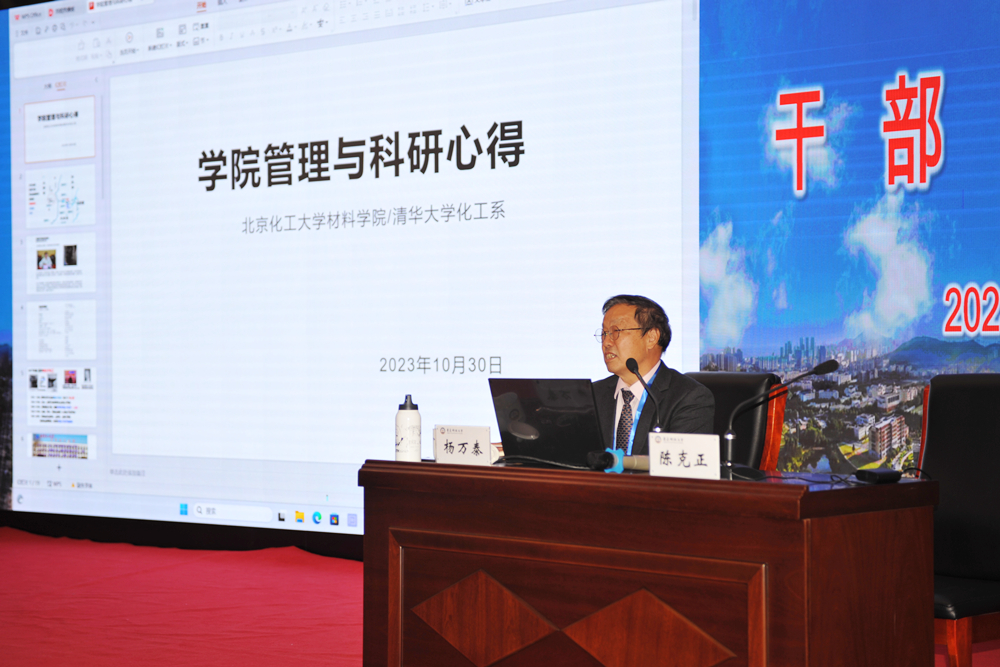 为全面提升校院两级治理能力和治理水平,10月30日,学校邀请中国科学院院士杨万泰教授做客“干部大讲堂”,作题为《学院管理及科研心得》的专题辅导报告。学校党委领导班子成员出席报告会。报告会由校长陈克正主持。