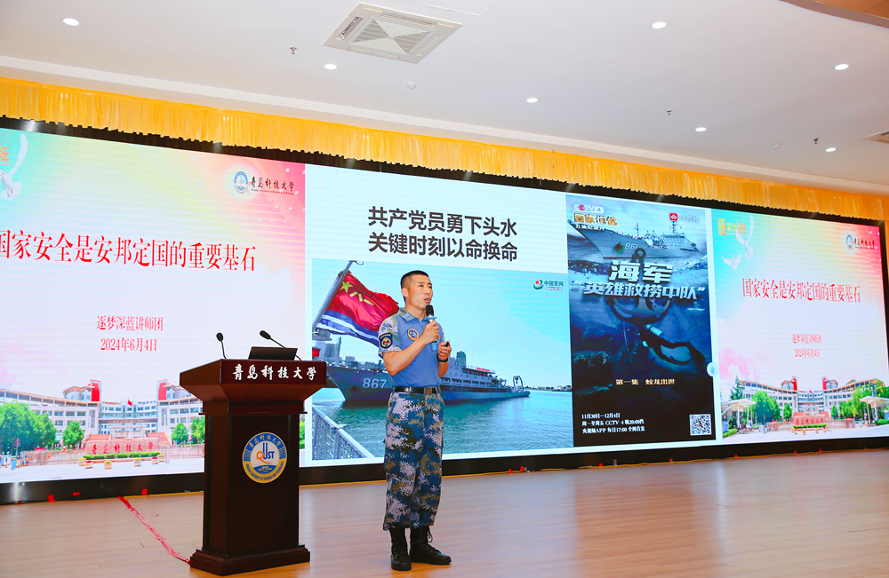 为教育引导师生牢固树立总体国家安全观,推动国家安全教育走深走实,6月4日下午,学校邀请逐梦深蓝讲师团做客“科大讲坛”,开展国家安全和爱国主义教育。党委常委、副校长丁林出席“科大讲坛”,党委学生工作部部长王丽主持讲坛。