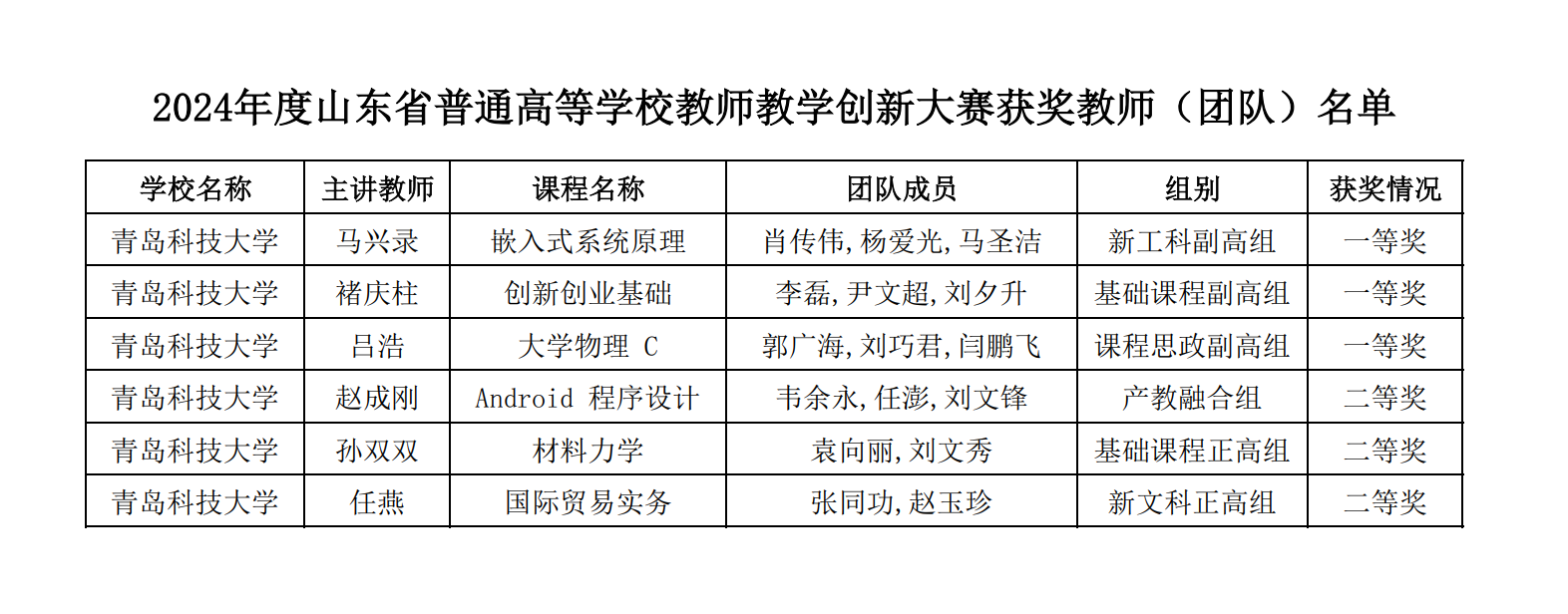 近日,山东省教育厅公布了2024年度山东省普通高等学校教师教学创新大赛获奖名单,万象城allwincity官网在教师教学创新大赛中再创佳绩,其中马兴录《嵌入式系统原理》教学团队获得一等奖并推荐至国赛,褚庆柱《创新创业基础》教学团队、吕浩《大学物理C》教学团队获得一等奖;赵成刚教学团队、孙双双教学团队、任燕教学团队获得二等奖。