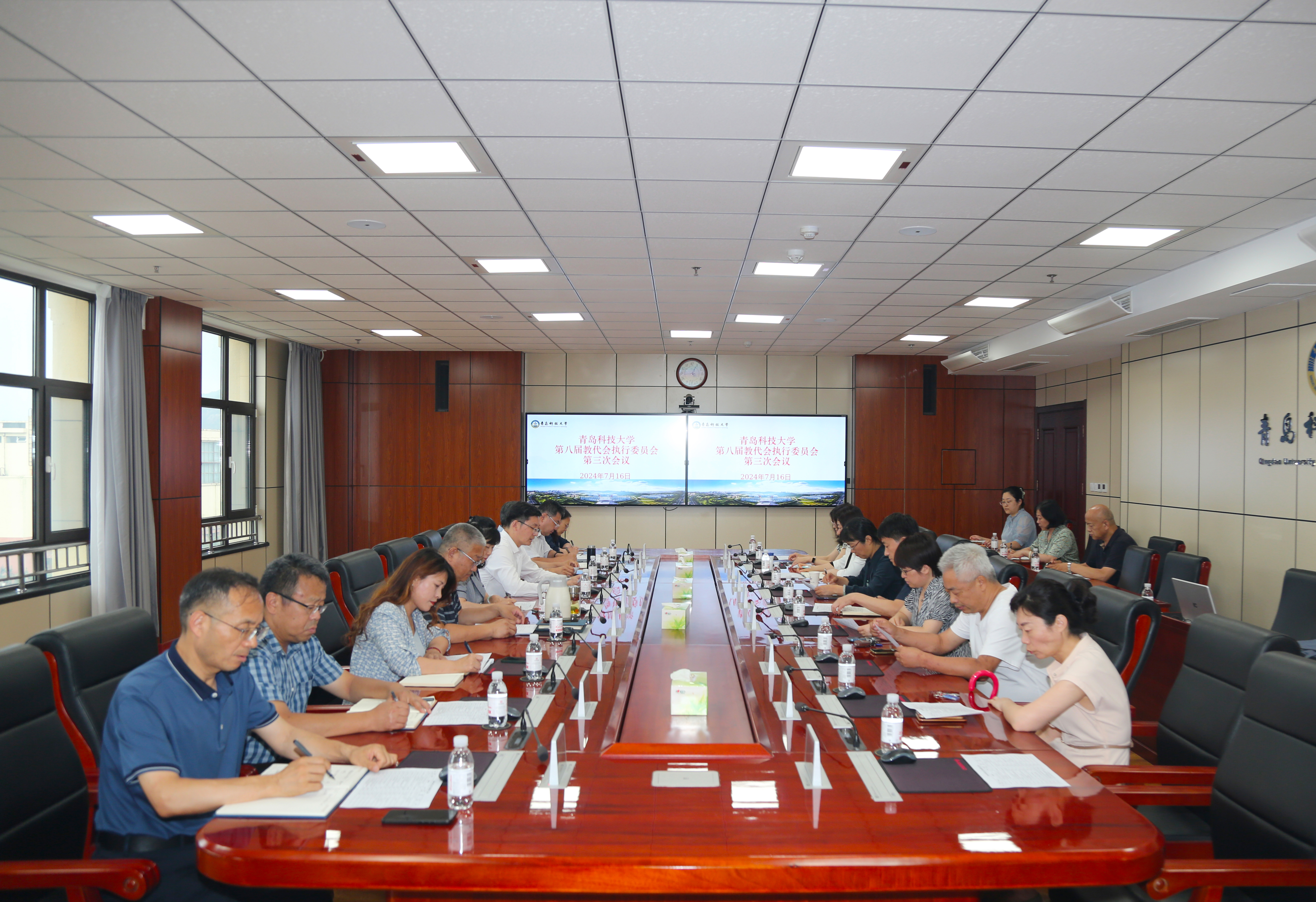 7月16日下午,第八届教代会执行委员会第三次会议在综合服务楼6015会议室召开,党委副书记沈文青和第八届教代会执行委员会全体委员参加会议,校工会主席郭永主持会议