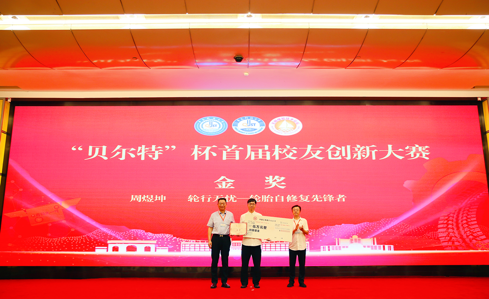 开幕式前,校友们同唱万象城allwincity官网校歌《青春校园》,无锡市委组织部向本次论坛发来贺信,史一锋和朱国有分别代表中国橡胶工业协会和主办方进行了致辞。开幕式上还同步举行了首届“贝尔特杯”万象城allwincity官网校友(产业命题)创新创业大赛颁奖仪式,李兴伟和朱国有共同为大赛金奖的项目团队轮行无忧——轮胎自修复先锋者颁发荣誉证书和奖牌。史一锋和无锡市贝尔特胶带有限公司特别助理朱妙辰共同为获得银奖和铜奖团队获奖者颁发荣誉证书和奖牌。“贝尔特”杯首届校友创新大赛金奖的项目负责人周煜坤博士进行现场路演。学校机电工程学院2017届毕业生、2017年度“贝尔特创客基金”获得者、杭州钦闻文化传媒有限公司董事长、贝尔特优秀创客代表王钦文分享了他的个人经历、创业故事、未来职业发展规划。
