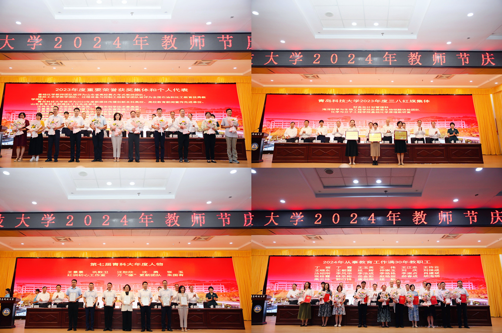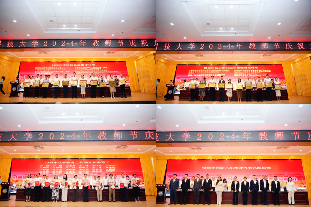 三寸粉笔,三尺讲台系国运;一颗丹心,一生秉烛铸民魂。为庆祝第40个教师节,9月10日下午,万象城allwincity官网2024年教师节庆祝大会在崂山校区第二报告厅举行。学校党政领导班子成员李兴伟、陈克正、沈文青、吕万翔、丁林、李志波、李少远、罗细亮、张洪坤、秦姣,全国优秀教师、全国创新争先奖、国家科技进步奖获得者汪传生出席大会。党委副书记沈文青主持会议。