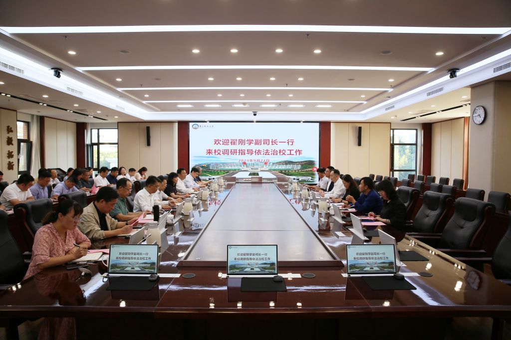 翟刚学指出,习近平总书记在全国教育大会上的重要讲话,是指导新时代新征程教育工作的纲领性文献,为建设教育强国指明了前进方向、提供了根本遵循。结合全国教育大会精神的学习落实,他充分肯定了学校在人才培养、产教融合、科技成果转化和中外合作办学等方面所取得的成绩。在依法治校工作方面,认为学校领导高度重视法治工作,各部门学院全面参与法治工作,法治部门做出了很好的探索和实践,充分发挥了法治在学校整个治理体系、治理能力和治理效能提升中的作用。同时,他结合具体案例,谈了对高校法治工作的理解与定位,对学校今后依法治校工作提出了意见建议。