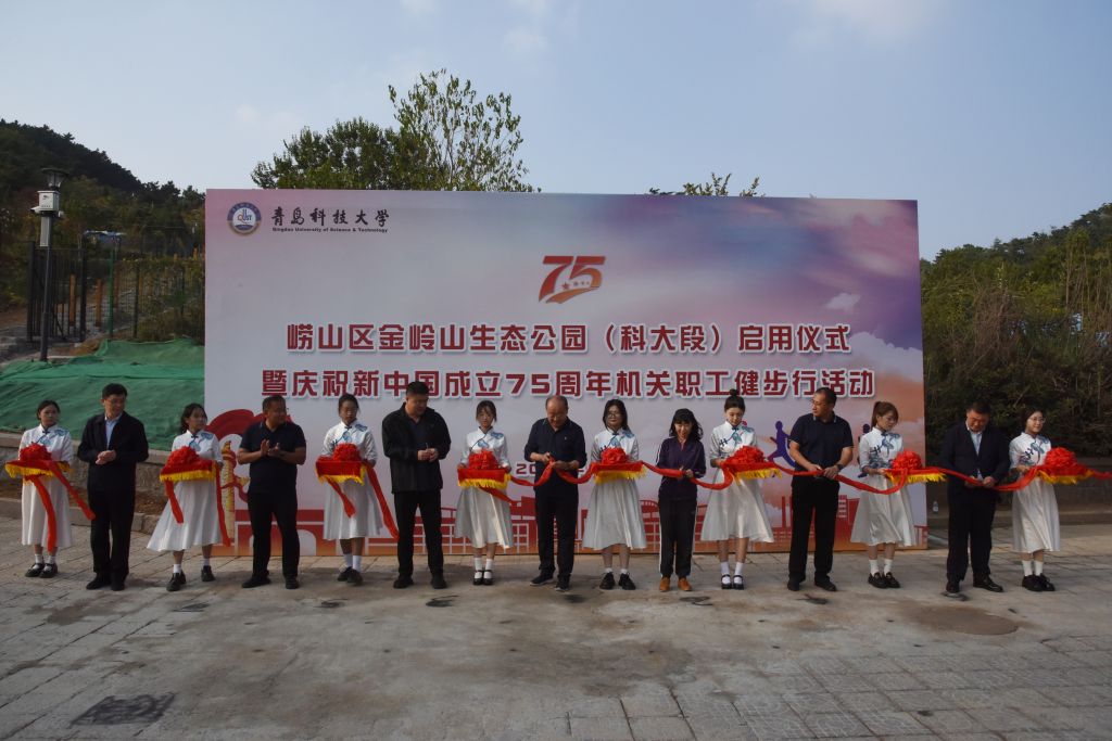 10月12日下午,崂山区金岭山生态公园(科大段)启用仪式暨庆祝新中国成立75周年机关职工健步行活动举行,校党委领导班子成员李勇、沈文青、张洪坤、秦姣和崂山区有关部门、街道、社区负责人出席仪式并剪彩,仪式由党委(校长)办公室主任毛常明主持。