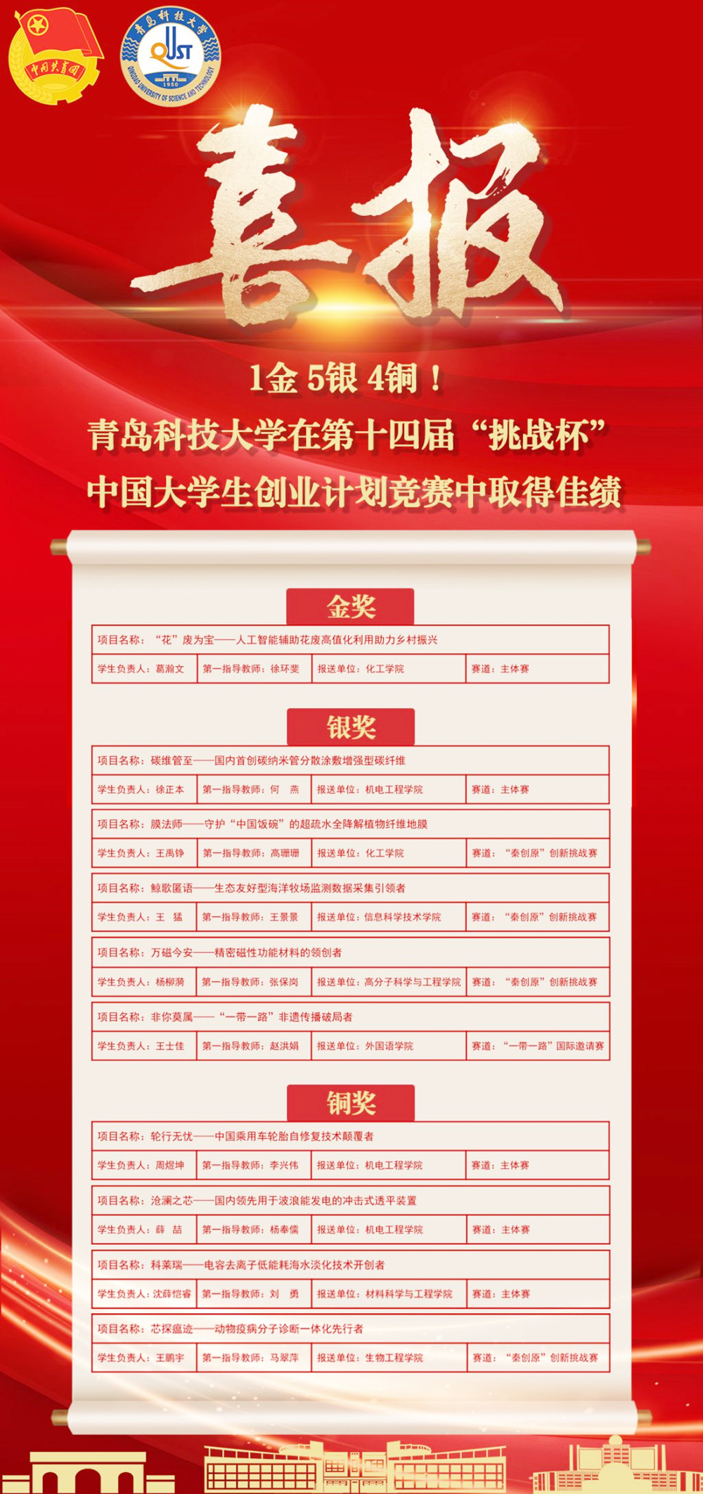 1金5银4铜!学校在第十四届“挑战杯”中国大学生创业计划竞赛中再创佳绩