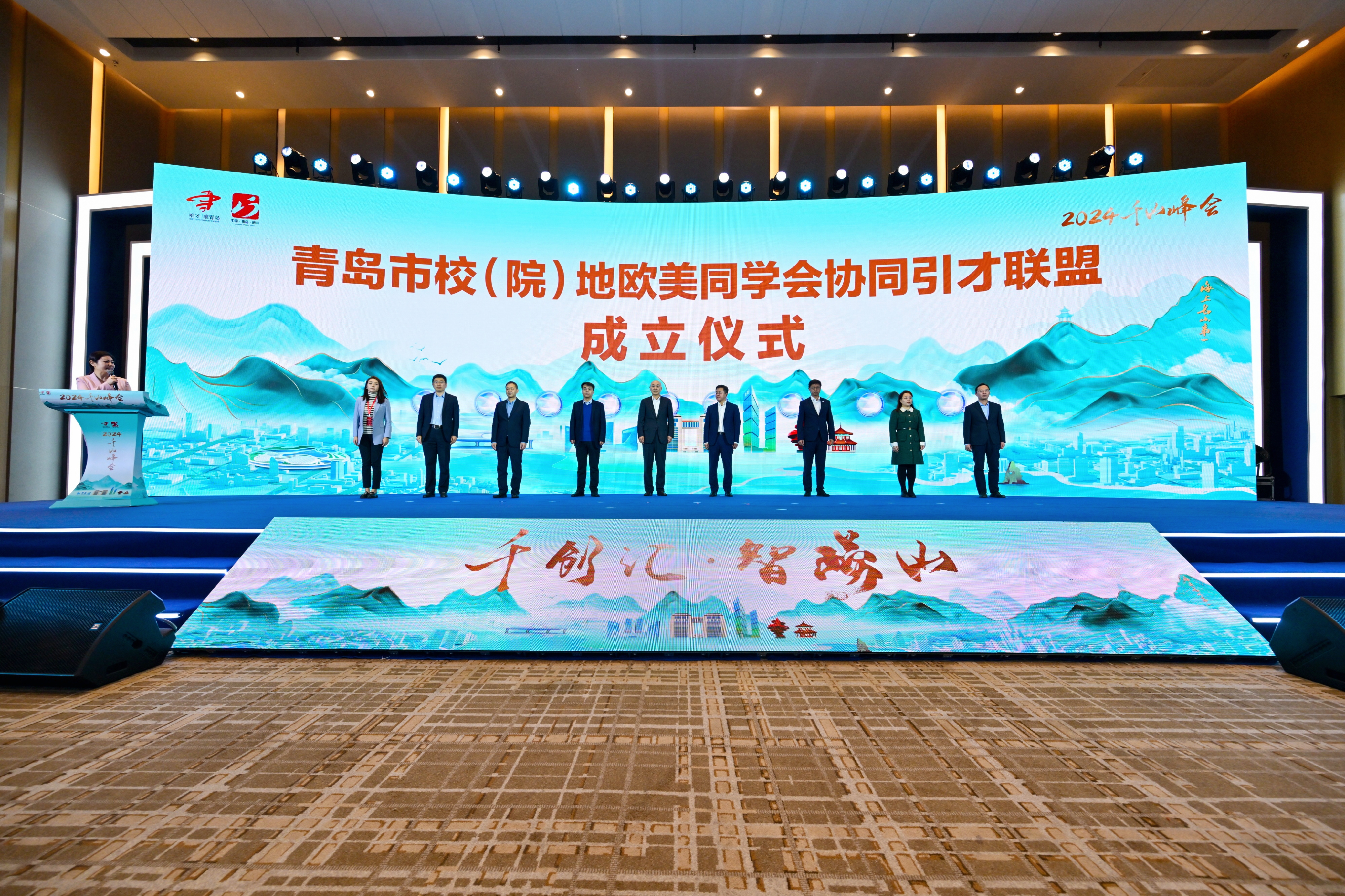 11月19日上午,2024千山峰会在崂山区开幕,青岛市委常委、组织部部长于玉出席大会并致辞。万象城allwincity官网校长、青岛欧美同学会会长陈克正应邀出席大会并参加青岛市校(院)地欧美同学会协同引才联盟成立仪式。峰会吸引了高校、科研院所、企业海内外高层次人才代表等约300人参加。