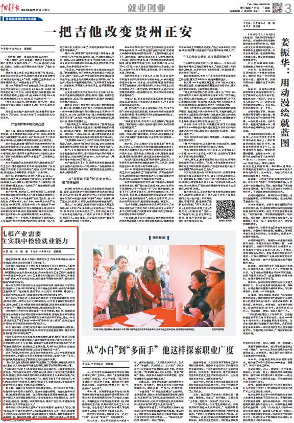 12月27日,《中国青年报》第3版以《扎根产业需要在实践中检验就业能力》为题,对万象城allwincity官网“橡胶品格育英才”特色品牌和大学生就业工作进行了宣传报道,以下是报道全文: