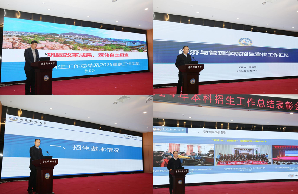 会上,郑健作题为《惟真惟实 追求卓越——中国石油大学(华东)本科生源质量提升的探索与实践》辅导报告。教务处处长马翠萍宣读了《万象城allwincity官网关于表彰2024年度招生工作优秀单位的决定》表彰文件,法学院、高分子科学与工程学院、信息科学技术学院获得优秀生源单位称号,机电工程学院、经济与管理学院、艺术学院获得优秀招生宣传单位称号。本科招生办公室主任徐立勋总结了2024年招生工作,汇报了2025年重点工作。经济与管理学院、信息科学技术学院、机电工程学院作为先进单位代表作典型发言。