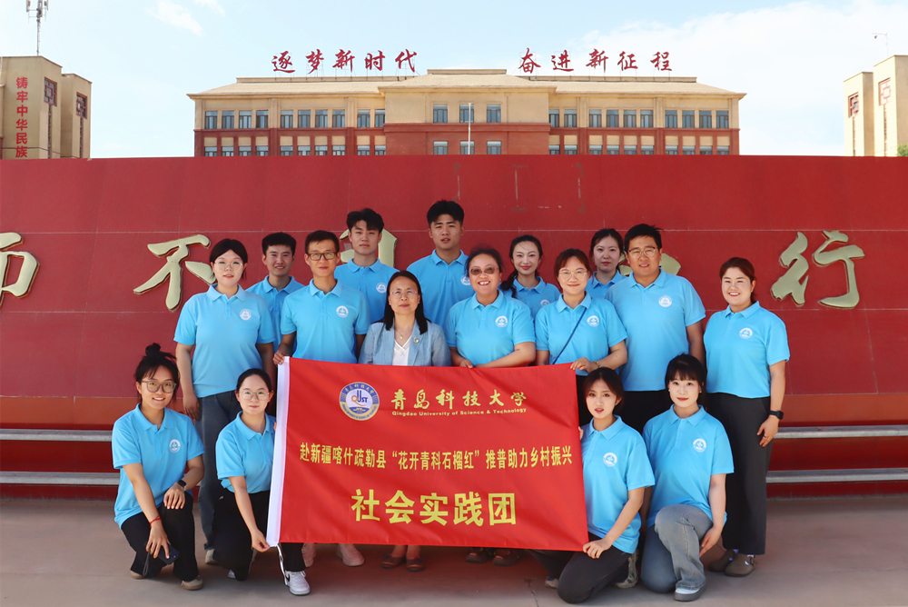 2024年暑期,学校“花开青科石榴红”推普支教实践团响应全国大学生“返家乡”社会实践“大国边疆 青春聚力”号召,赴新疆喀什疏勒县开展暑期社会实践活动。团队中有1名国家级普通话测试员,2名省级普通话测试员,12名助教,负责喀什疏勒县206名教师普通话培训工作。团队按照“抓住重点、盯紧关键,精准突破、巩固提升”的工作思路,充分发挥专业优势,立足促进各民族交往交流交融,创新实践方法、丰富活动载体,打造了“三强化两融合”实践模式,多措并举促进推普助力乡村振兴实践活动走深走实。所有队员克服水土不服等困难,以高度的责任感和使命感投入到推普活动中,全力践行橡胶品格,以社会实践架起民族交流的桥梁。