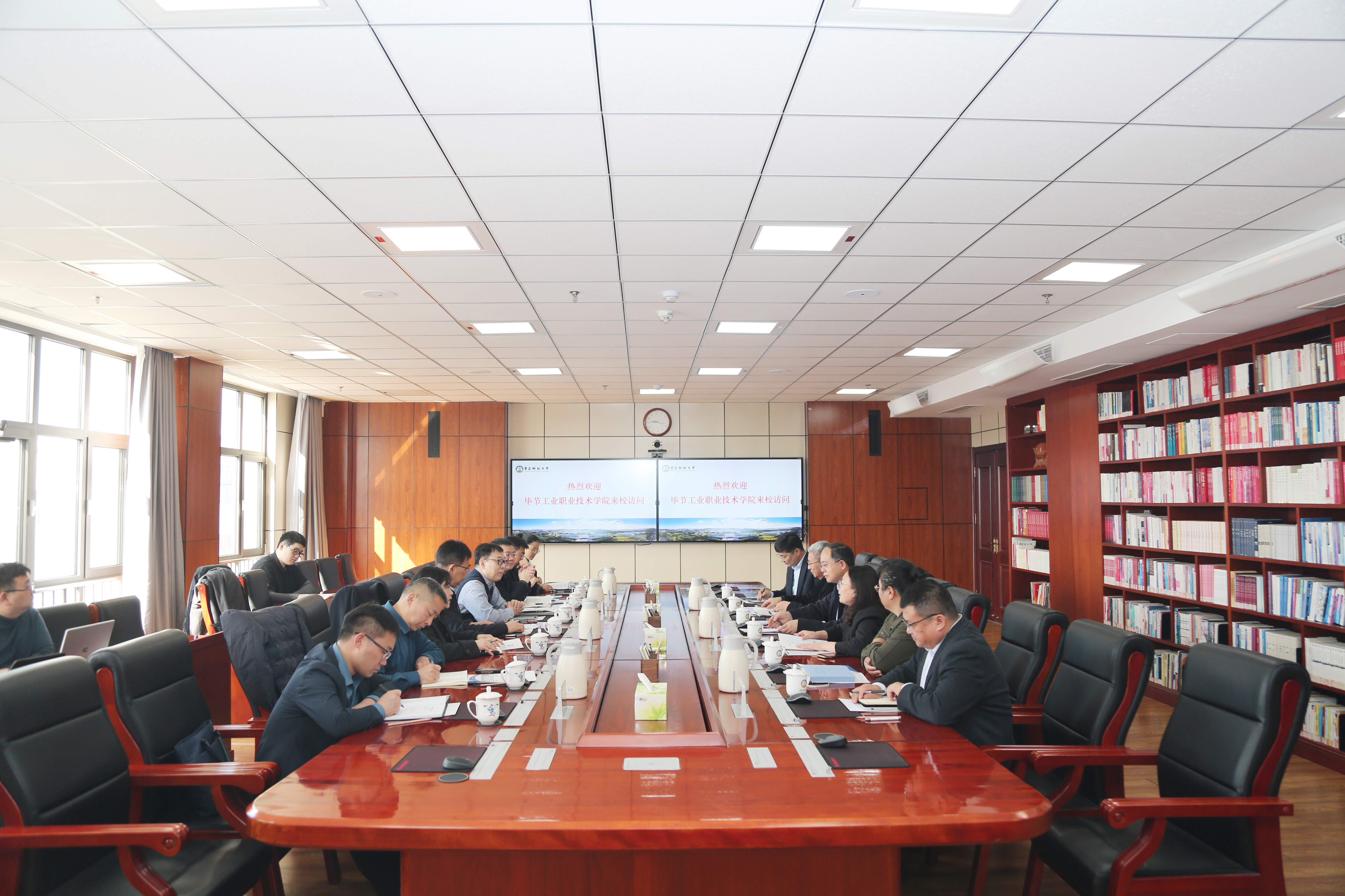 3月13日,毕节工业职业技术学院党委书记周杰一行来校访问交流。学校党委常委、副校长罗细亮出席会议并致辞。教务处处长马翠萍主持座谈会。