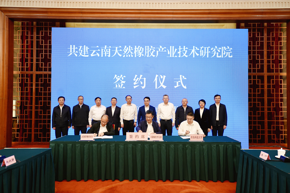 吕万翔,西双版纳州委常委、常务副州长罗景锋,云南省热带作物科学研究所党委书记、所长穆洪军代表三方共同签署《共建云南天然橡胶产业技术研究院协议》。根据协议,研究院按照校地合作和科教融汇的模式由三方共建,州政府将研究院纳入重大科技创新平台,提供政策支持和保障,每年补助300万元专项资金用于研究院的建设和发展,州政府还将提供产业应用场景和周边合作渠道,支持研究院的科研成果从“实验室”走向“生产线”。三方将整合各自优势资源,在产业技术攻关、科研成果转化、产业人才培养等方面服务好天然橡胶一二三产业发展,打造服务国家战略的天然橡胶全产业链创新高地。
