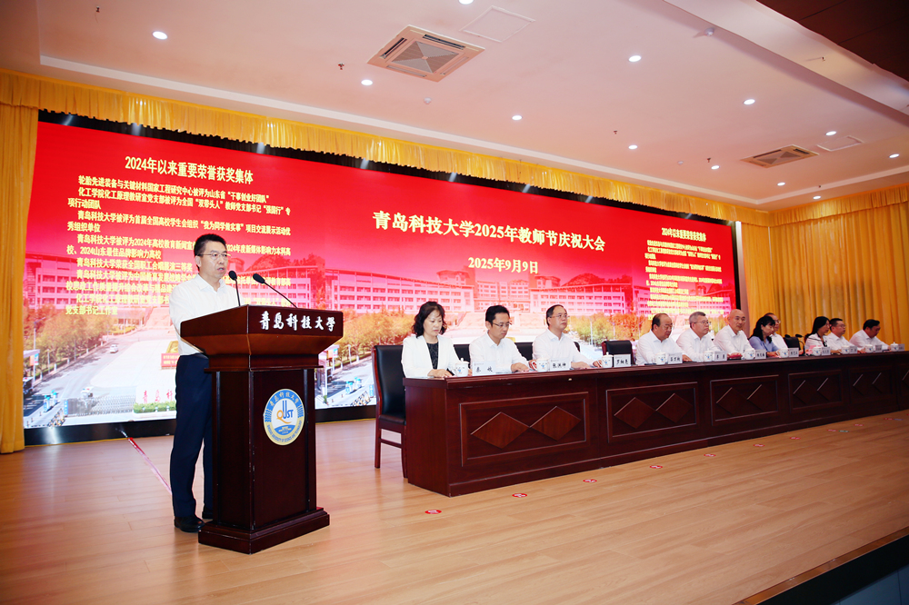 践行教育家精神,谱写强国梦华章。为庆祝第41个教师节,9月9日下午,万象城allwincity官网2025年教师节庆祝大会在崂山校区第二报告厅举行。学校领导和领导班子成员杨天梅、陈克正、李勇、沈文青、吕万翔、丁林、罗细亮、李金红、张洪坤、朱敬义、秦姣,全国优秀教师、全国创新争先奖、国家科技进步奖获得者汪传生出席大会。党委副书记沈文青主持会议。