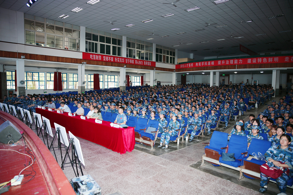 青岛市国防动员办公室督导处处长王肇伟、学校党委学生工作部部长王丽,学校军事爱好者协会成员及大一新生代表等参加活动。