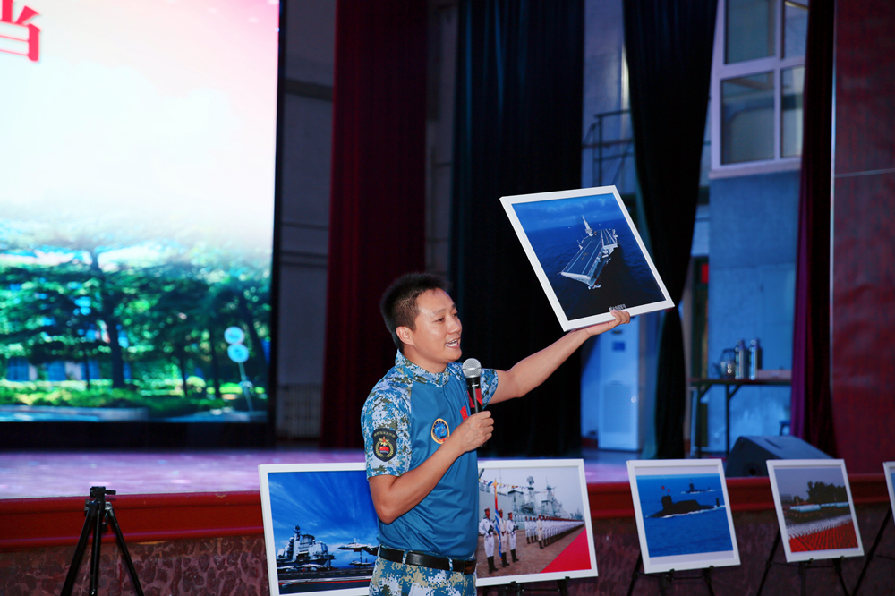 此次活动由学校与青岛市国防动员办公室联合主办,党委宣传部、党委学生工作部协办,分为两个阶段进行。第一阶段,青岛“逐梦深蓝”讲师团成员、原海军北海舰队政治部保密助理苏新旺为现场师生生动讲解“万里海疆红”摄影展。展览涵盖“难忘历史”“大国海军”“美丽海疆”三大板块,通过大量珍贵影像,全景呈现人民海军在党的领导下由弱到强、不断壮大的辉煌历程,生动展现我国海洋国防力量的现代化进程,为师生带来一场震撼人心的海洋国防教育。第二阶段,青岛“逐梦深蓝”讲师团成员、青岛市国防教育师资库专家、原海军某基地副团职所长谢晓飞作题为“百年变局、强国担当”的专题报告。他从“百年未有之大变局”“总体国家安全观”“伟大抗战精神”等维度,通过一张张图片、一组组视频和一个个案例,深入浅出地阐述了在当今世界变局加速演进背景下维护国家安全的重大意义与紧迫性。