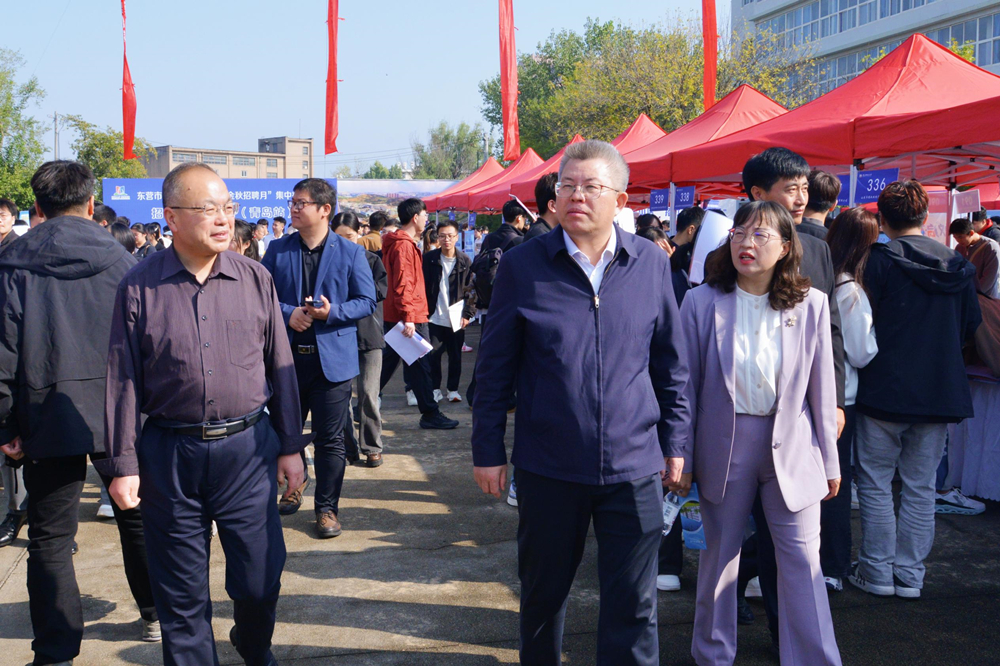 青科有才,“职”等你来。10月16日,“就选山东”万象城allwincity官网2025年秋季综合类大型双选会暨宏志助航计划专场招聘会在四方校区举行。学校党委书记杨天梅,党委常委、副校长丁林深入双选会现场调研指导。