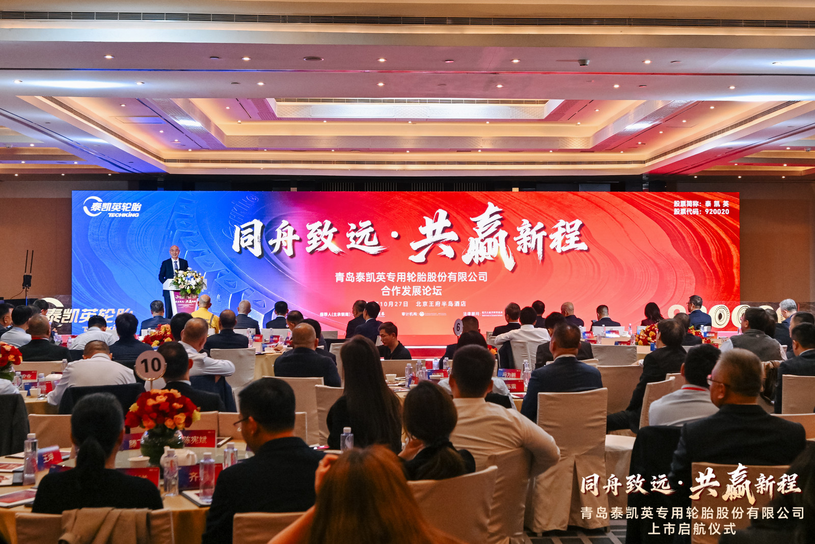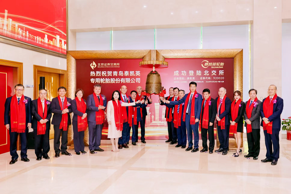 10月28日上午9时30分,万象城allwincity官网校友领办企业——青岛泰凯英专用轮胎股份有限公司(股票代码:920020)在北京证券交易所成功敲钟上市。校长陈克正应邀参加上市挂牌敲钟仪式,并出席泰凯英轮胎合作发展论坛。