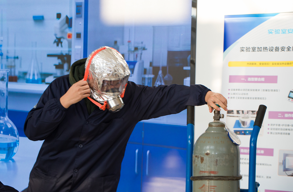 青岛得一气体有限公司技术工程师曲福海以“关于实验室用气安全的思考”为题,为现场师生开展了实验室安全培训,从高校实验室常用气体认识、实验室用气常见问题案例、实验室气体安全风险管控等方面对实验室气体安全使用与管理进行了全面详细的讲解。应急演练采用“实战+观摩”形式,主要模拟实验室有毒气体因意外发生泄漏的应急处置过程,包括事故报警、人员疏散、医疗救护、现场抢险、舆情发布等实验室安全事故应急涉及的全要素,提高了参演和观摩人员在紧急情况下的自救互救及应急处置技能。
