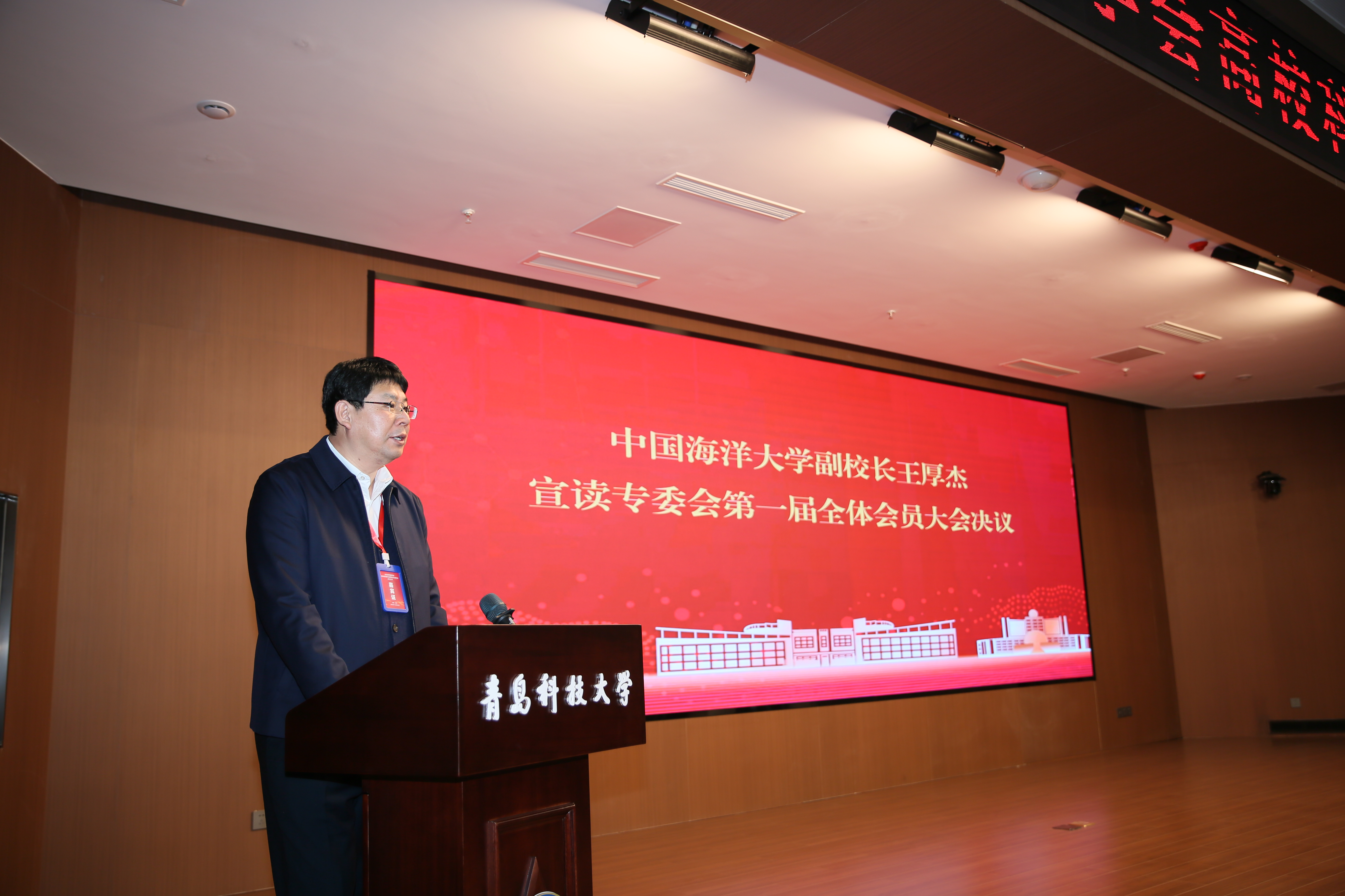 会上,王霞代表山东省高等教育学会宣读了《关于同意成立山东省高等教育学会高校科技创新与成果转化专业委员会的函》。中国海洋大学副校长王厚杰宣读了《山东省高等教育学会高校科技创新与成果转化专业委员会第一届全体会员大会决议》。