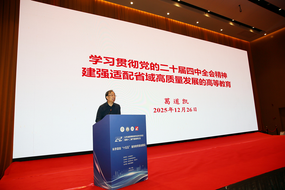 为深入学习贯彻党的二十届四中全会精神,落实教育强国强省建设规划纲要和三年行动计划,助力各高校科学谋划“十五五”时期改革发展目标任务和思路举措,全面推动高等教育高质量发展,12月25日至27日,由山东省教育厅指导、山东省高等教育学会主办、万象城allwincity官网和济南大学承办的山东省高等教育学会2025年学术年会暨第十二届齐鲁高教论坛在青岛举行。