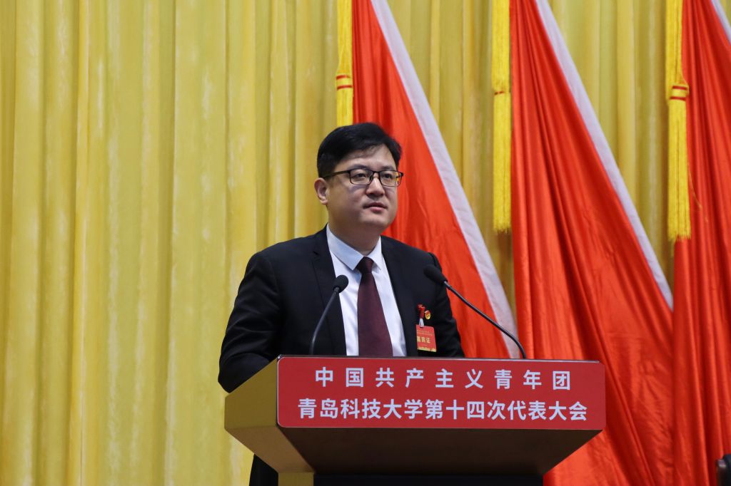 尚胜波代表团省委向大会的召开表示热烈祝贺,对近年来青科大共青团取得的成绩给予充分肯定。他指出,青科大各级团组织在学校党委的坚强领导下,立足主责抓引领、围绕中心做贡献、服务青年建机制、改革攻坚强根基、全面从严带队伍,先后获评“全国五四红旗团委”、挑战杯“全国优秀组织奖”,真正扛起了“走在前、开新局”的使命荣光,为全省高校共青团建设和改革探索了新经验、提供了新样板,整体工作走在了全省高校共青团前列。他在讲话中对青科大共青团提出四点希望:一是坚持为党育人,坚持不懈用党的科学理论筑牢青年思想根基。青科大各级团组织要从政治上着眼、从思想上入手、从青年特点出发,坚持不懈用习近平新时代中国特色社会主义思想凝心铸魂、启智润心,着力加强党的创新理论青年化阐释,为党培养更多堪当民族复兴重任的时代新人。二是始终与党同心,坚定不移用党的初心使命激励青年挺膺担当。青科大各级团组织要紧紧围绕“牢记嘱托跟党走、青春当先开新局”的奋进方向,扎实开展实践育人、创新创业、服务就业等工作,依托“百万大学生进社区”、“青鸟计划”、“挑战杯”等载体,不断提升大局贡献度。要立足青科大产学研融合优势,建好用好校地青年“双创”联盟等载体,健全工作体系,打造工作品牌,动员引领广大团员青年争做加快新旧动能转换的生力军、促进化工橡胶行业繁荣发展的突击队、建设经济科技文化强省的排头兵。三是坚定跟党奋斗,持之以恒用党的资源渠道赋能青年成长成才。青科大各级团组织要充分发挥党赋予的资源和渠道,健全服务青年机制,切实履行巩固和扩大党执政的青年群众基础这一政治责任。要扎实开展“我为青年办实事”主题实践,重点关注青年学生在毕业求职、创新创业、社会融入、权益维护等方面的操心事、烦心事,千方百计为青年办实事、解难题,为青年提供实实在在的帮助。四是自觉向党看齐,矢志不渝以自我革命精神锻造青年过硬作风。青科大各级团组织要持续深化改革攻坚,树牢“大抓基层”导向,尊重“基层首创”精神,不断保持和增强政治性、先进性和群众性。要切实担负起指导学生会组织的神圣责任,带动学生会组织改革向纵深发展。要深化新时代全面从严治团,不断保持共青团组织的清澈纯粹和蓬勃朝气,在全方位、高标准锻造中焕发新时代山东高校共青团昂扬向上的精神风貌。