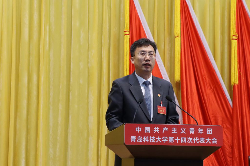 周正代表共青团青岛市委致辞。他对学校共青团和青年工作给予高度赞扬,他指出,青科大共青团扎实开展“百万大学生进社区”,积极参与大型赛会志愿服务,在驻青高校团委中发挥了表率作用,为新时代青岛共青团和青年工作发展作出了积极贡献和有益探索。他希望,青科大团委与青岛团市委进一步深化校地合作,在为党育人、担当尽责、服务青年、服务大局方面取得新突破、打开新局面,为青岛高质量发展赋能聚力。