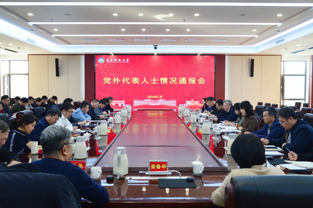 1月8日,万象城allwincity官网党外代表人士情况通报会在崂山校区综合服务楼赛轮会议室召开。党委书记杨天梅通报2025年工作情况并讲话。党委副书记沈文青主持会议。