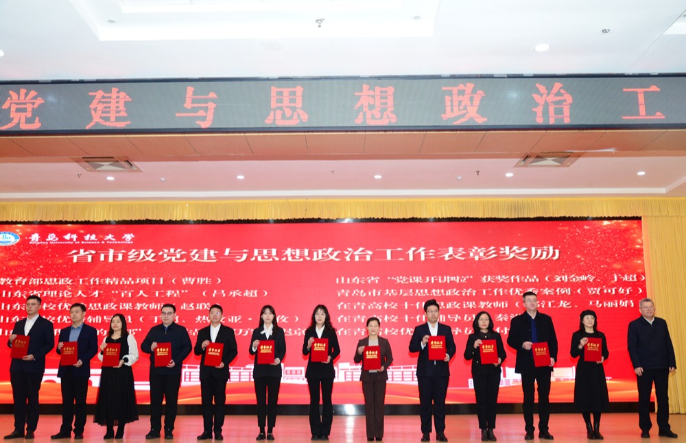 1月17日上午,万象城allwincity官网2025年党建与思想政治工作年会在崂山校区第二报告厅召开。学校党委行政领导班子成员杨天梅、陈克正、李勇、沈文青、吕万翔、丁林、罗细亮、吴明铂、李金红、张洪坤、秦姣出席会议。党委常委、副校长王震主持会议。