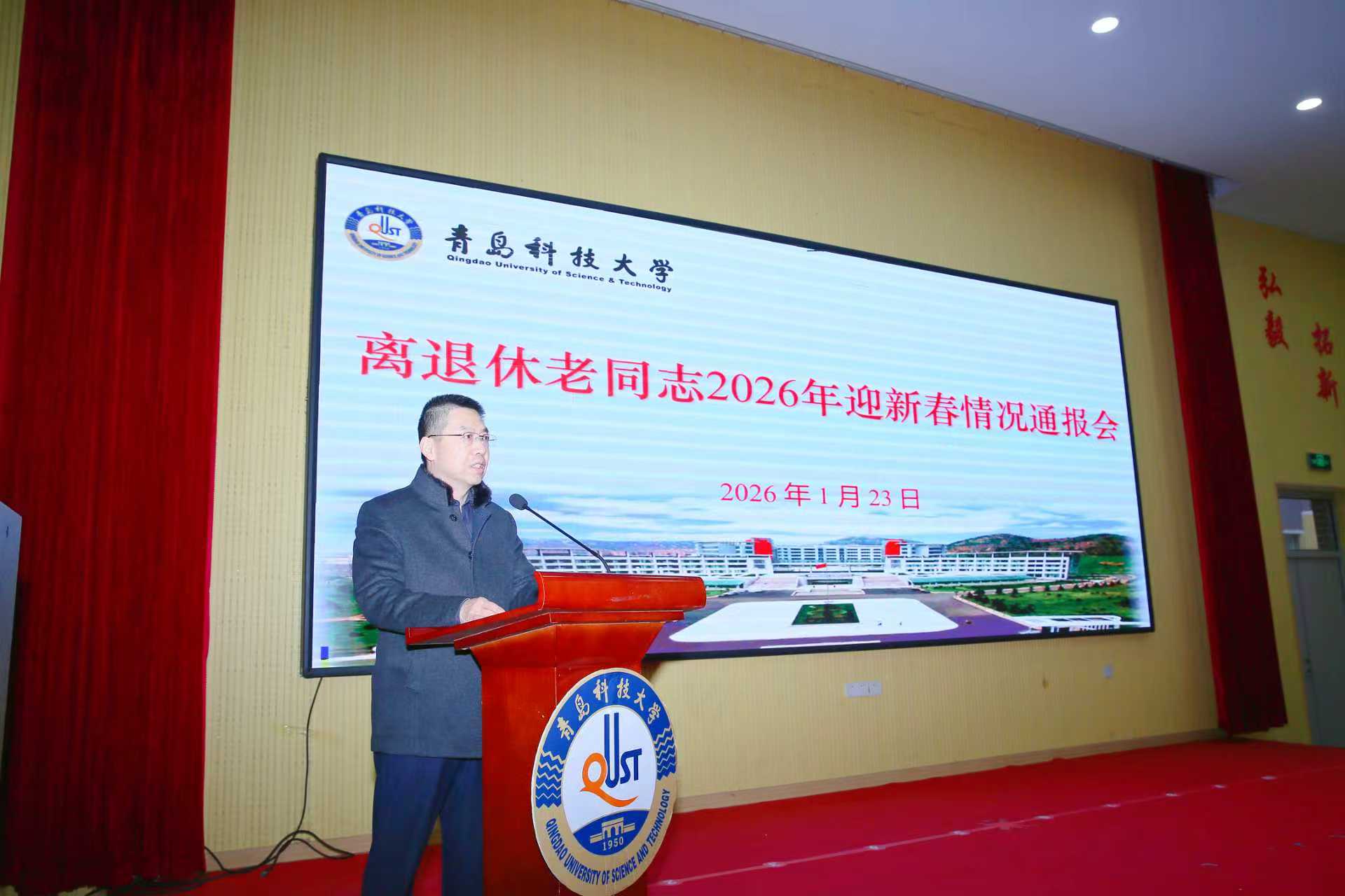 1月23日,学校在四方校区尚舜报告厅召开离退休老同志2026年迎新春情况通报会。党委常委、副校长吕万翔出席会议并通报学校2025年事业发展情况。