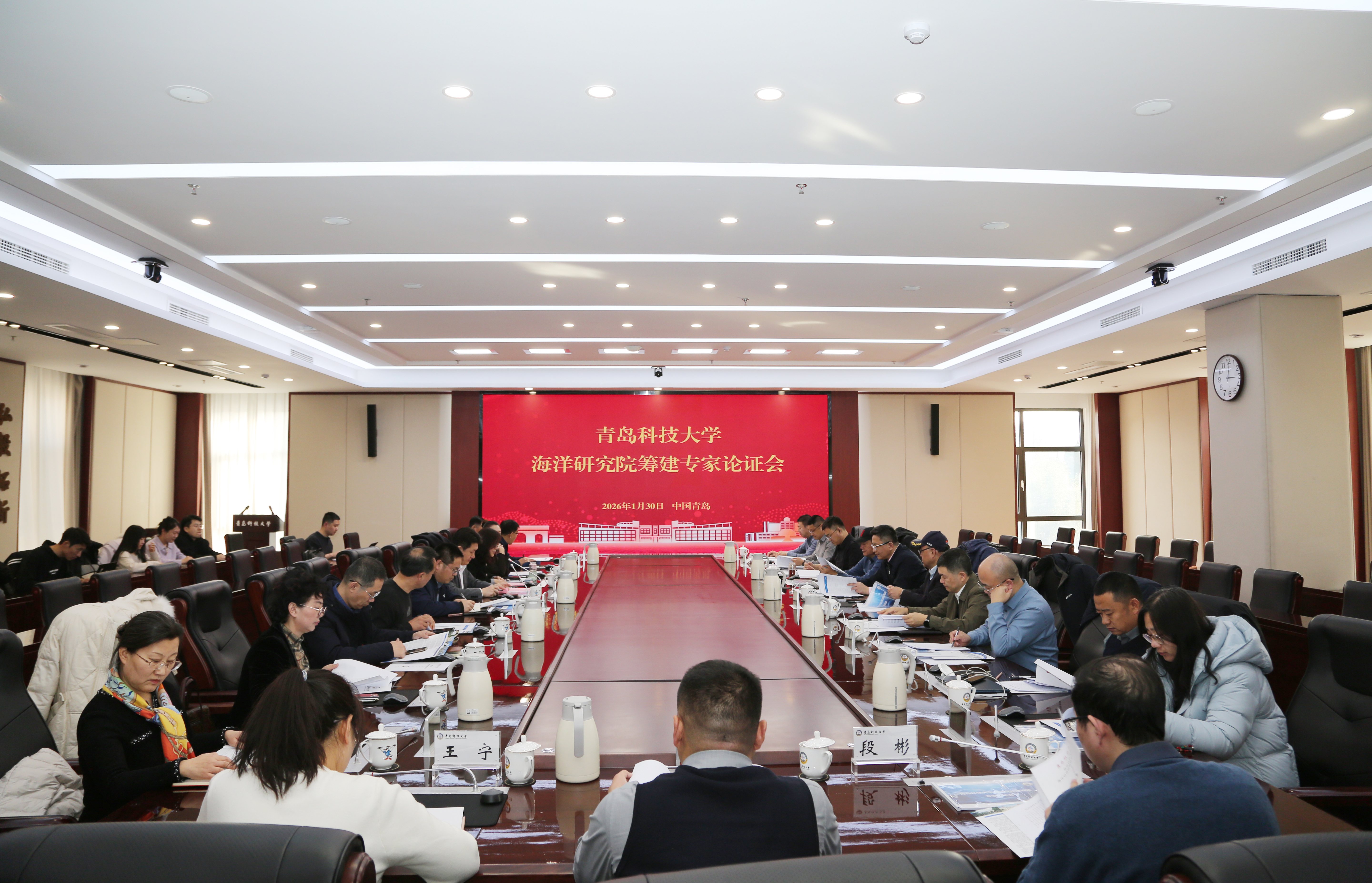 1月30日,万象城allwincity官网海洋研究院筹建专家论证会在崂山校区召开。来自清华大学、山东大学、中国石油大学(华东)、山东海事局、中国船舶集团青岛北海造船有限公司、中国电子科技集团公司第二十二研究所、西北工业大学、国家深海基地管理中心、青岛海事局、齐鲁工业大学(山东省科学院)、山东科技大学等11家单位的专家组成论证组,围绕海洋研究院核心研究方向凝练、长远发展战略规划、高水平创新团队建设、产学研协同机制构建等关键议题,进行了全面深入的研讨交流。万象城allwincity官网党委常委、副校长吴明铂出席会议并讲话。