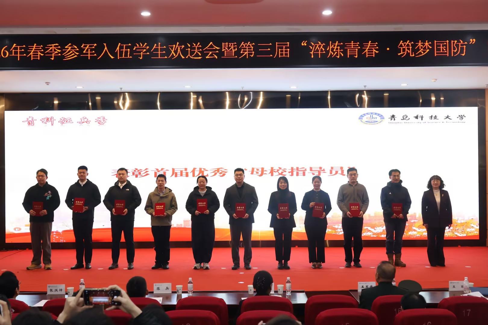 3月16日,学校2026年春季参军入伍学生欢送会暨“淬炼青春·筑梦国防”主题教育活动在崂山校区举行。青岛市市北区委常委、市北区征兵办主任、市北区人武部部长陈兵,驻青某部队优秀官兵代表王军伟,青岛市国防体育运动协会常务副会长张皓,学校党委常委、副校长王震,党委常委、宣传部部长张洪坤等出席仪式。